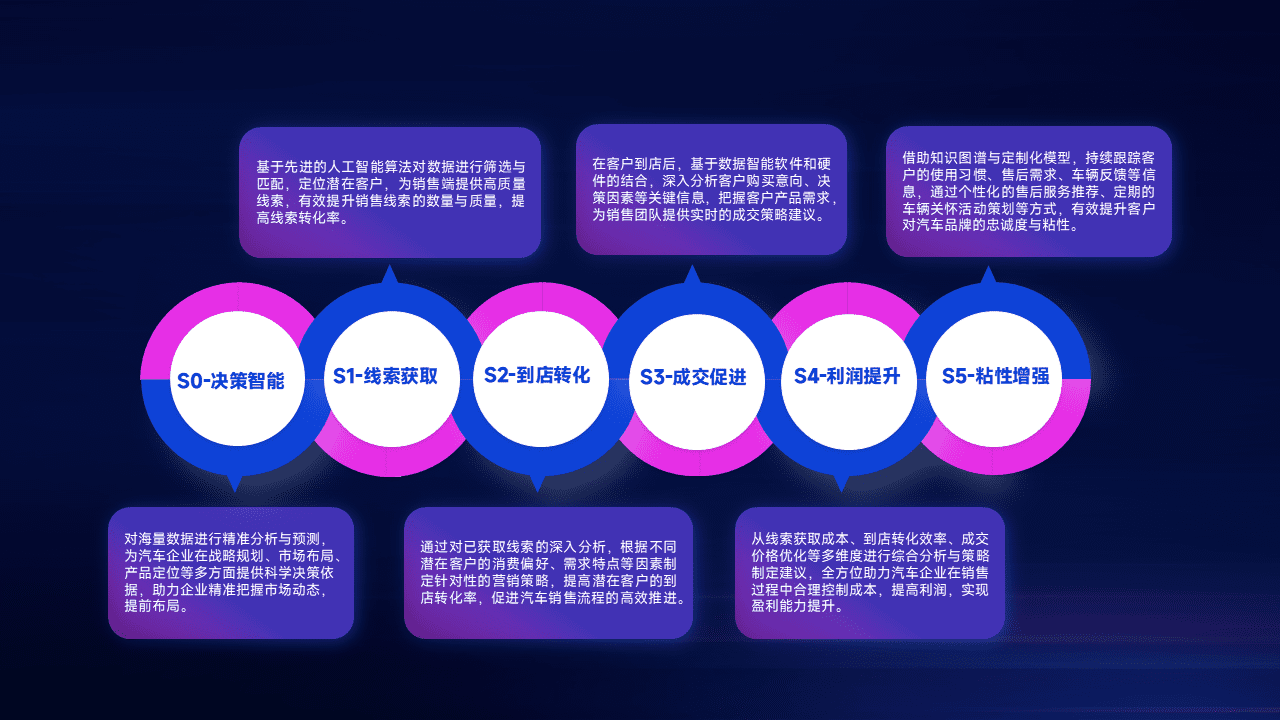通过拓宽潜在客户来源、、、优化线索分配并提高到店转化率,,,,以增强销售效率。。同时,,,,利用线索数据不断优化分析模型,,有效提升转化率,,扩大营销影响力。。
